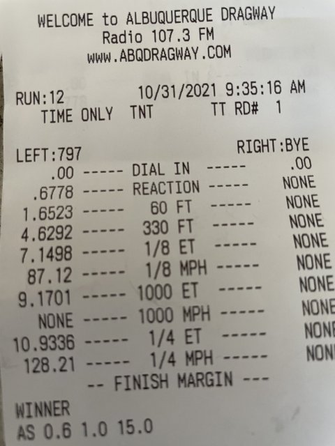 That was the backup run too. A week or 2 before that I went 9.97@139 on a 1.58 60ft.